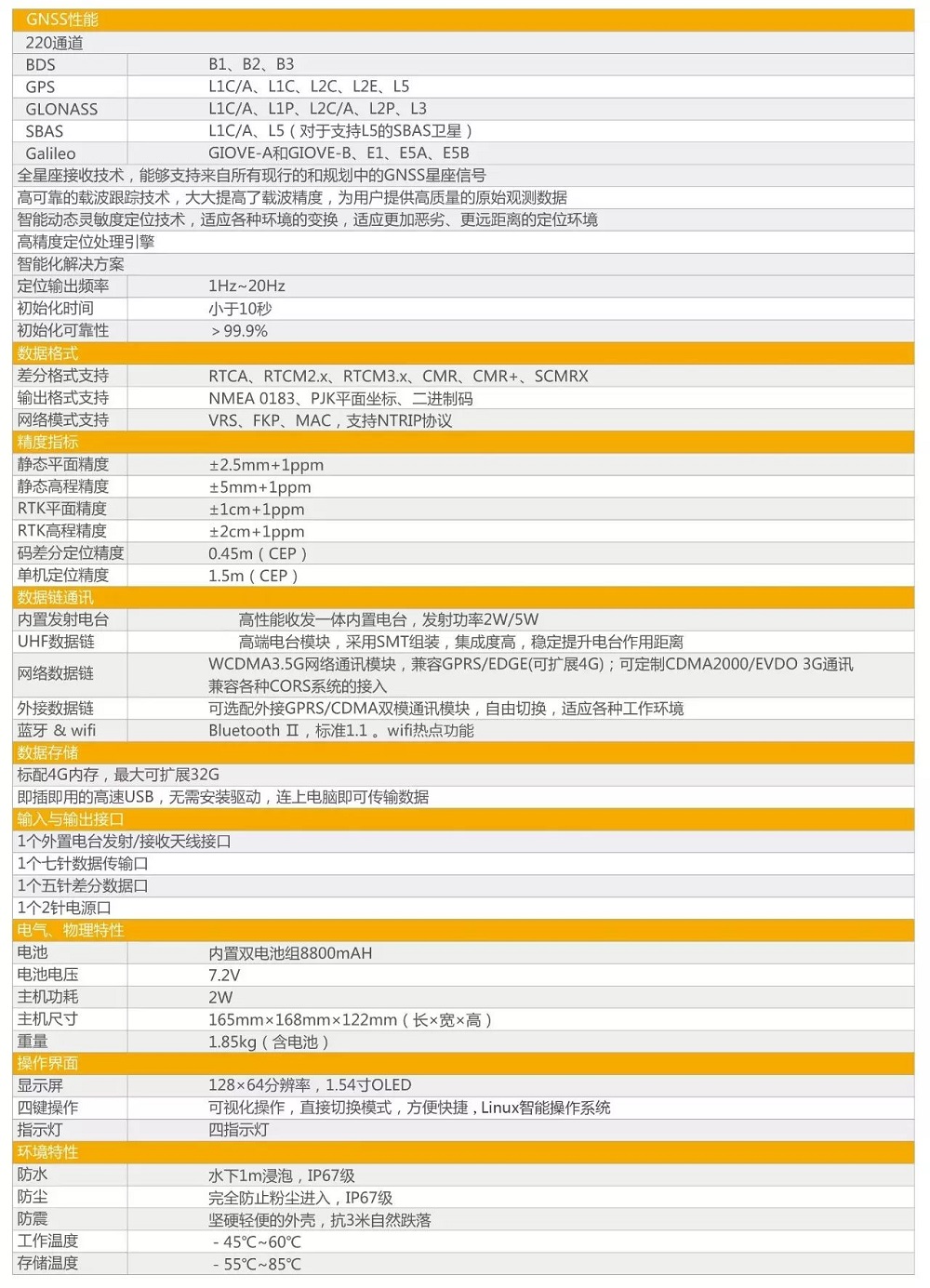 主要性能參數定位輸出頻率1Hz~20Hz初初始化時間小于10秒初始化可靠性>99.9%