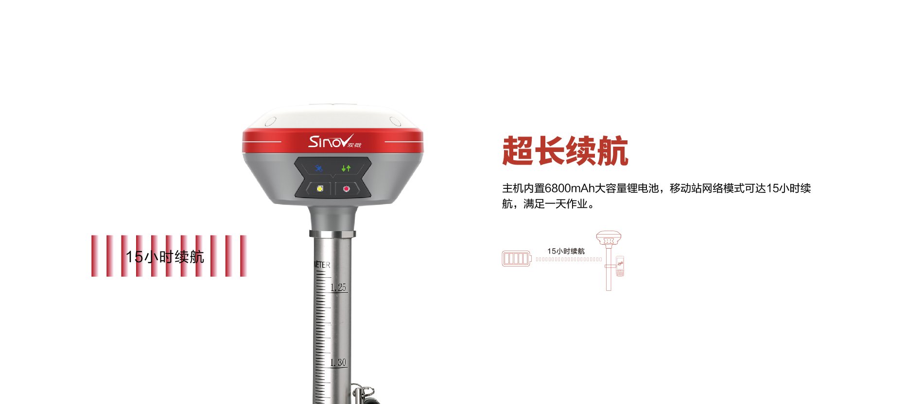 內(nèi)置6800mAh鋰電池,支持移動(dòng)站15小時(shí)續(xù)航 |